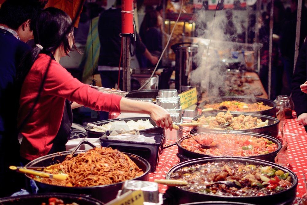 Nekonečná studnica jedál z celého sveta. Nájdete niekoľko marketov so stánkami, kde vám pripravia tradičnú arménsku, africkú, či mexickú kuchyňu. Medzi obľúbené patrí najme trh v Camden Town, kde nájdete vážne všetko jedlo sveta a na trhu, ktorý funguje celoročne v bývalých stajniach, môžete tu kúpiť všetko cez ponožky až po starožitnosti.