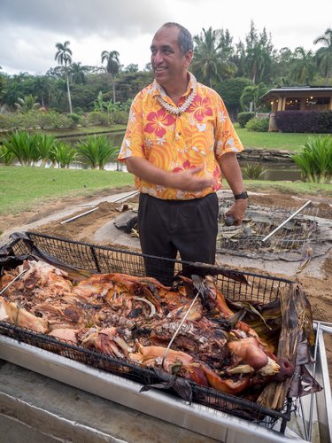 Kuchyňu. Havajská kuchyňa je pestrou mozaikou kultúrnych rozmanitostí. Špecialitami sú bravčové mäso kalu zapečené s banánmi, losos s rajčinami a cibuľou alebo ryby s listami taro a kokosovým mliekom. Výborne je i surové rybie mäso s rôznymi omáčkami – poke a určite vyskúšajte makadamové orechy. Havajčania milujú pivo a kávu, ideálne z Kauai, alebo Veľkého Ostrova. Havajská kuchyňa je bohužiaľ citeľne vytláčaná americkými fastfoodmi, takže za originálne havajské jedlo si budete musieť dosť priplatiť a hlavne ho nájsť.